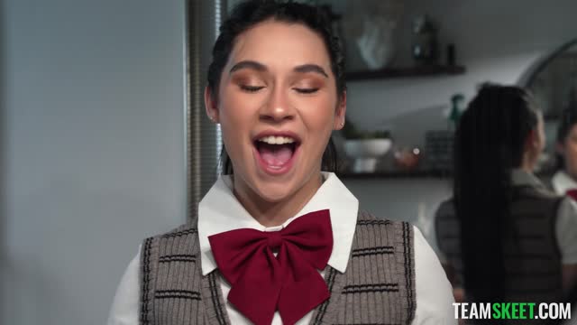 Skinny teen brunette Ashley Rabbit engoys her first anal creampie
