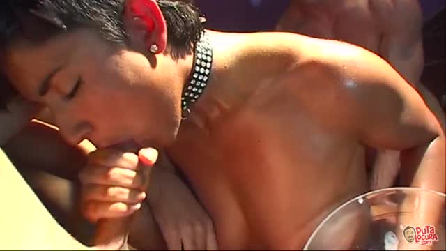 Bukake brutal / ¡17 tíos lefándole la cara!
