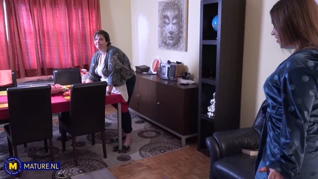 Teeny Irina Cage loves to lick her curvy stepmom Gasha's wet pussy on the sofa – Gasha (47) & Irina Cage (25)