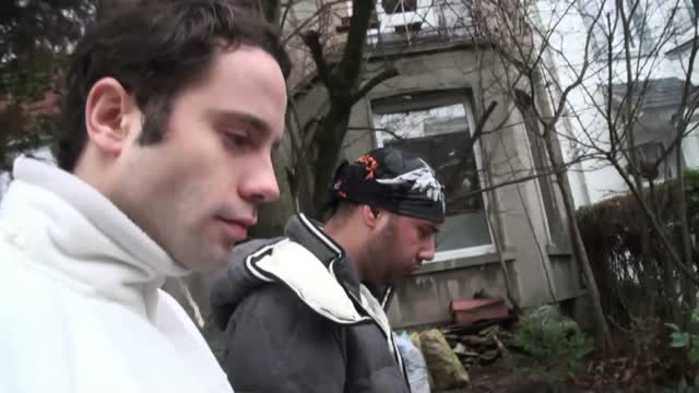 A stranger fucks an 18-year-old virgin in the ass on the stairs and cums on glasses